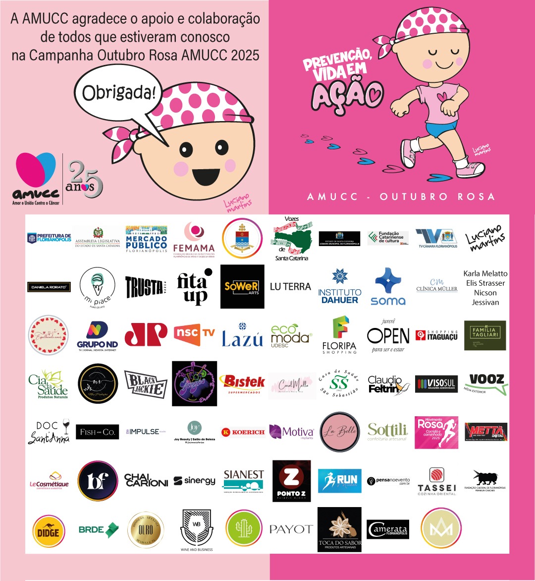Nosso compromisso é eterno. Agradecemos a cada parceiro, voluntário, empresa e cidadão que vestiu o rosa e fortaleceu nossa missão. Contamos com você para seguirmos com Amor e União Contra o Câncer por muitos anos, garantindo que a “Prevenção: Vida em Ação” seja um lema praticado o ano inteiro!