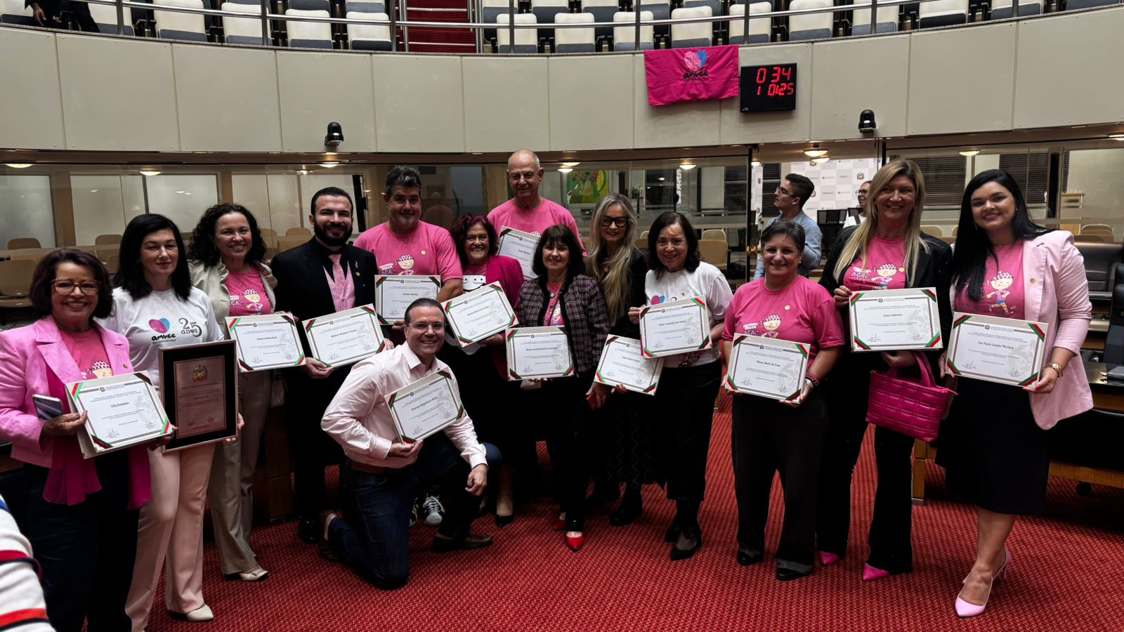 O ápice desta celebração de 25 anos veio com o reconhecimento institucional. Fomos honrados com sessões especiais na Assembleia Legislativa de Santa Catarina (ALESC) e na Câmara Municipal de Florianópolis, onde voluntários, pacientes e apoiadores lotaram os plenários. As homenagens destacaram o nosso papel fundamental, desde a fundação em 2000 por mulheres que transformaram dor em propósito, até nos tornarmos uma referência nacional e internacional na defesa dos direitos dos pacientes, oferecendo suporte psicológico, nutricional, fisioterapia oncológica e assessoria jurídica.