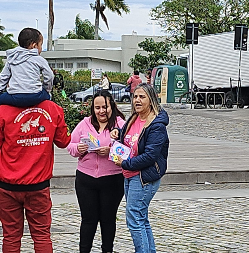 Neste dia, com o apoio fundamental dos nossos voluntários e profissionais, a calorosa parceria do Grupo Espalhando Amor, e o importante apoio institucional da Prefeitura Municipal de Florianópolis, dedicamos nosso tempo a ouvir, orientar e distribuir materiais informativos. Para reforçar a ação e dar suporte à nossa equipe, a Secretaria Municipal de Saúde de Florianópolis cedeu uma Van de apoio, que permaneceu no local durante todo o evento.