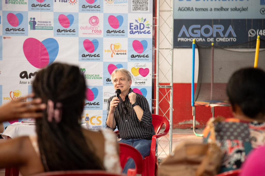 Um dos destaques do dia foi a palestra educativa que reuniu especialistas para esclarecer dúvidas da população. Participaram a Dra. Fabiana Rebelo Pereira Costa, ginecologista e obstetra, e o professor Alexandre Onofre, bioquímico. A mediação do debate ficou por conta de Grasielli Peres, influenciadora oncológica e ativista.