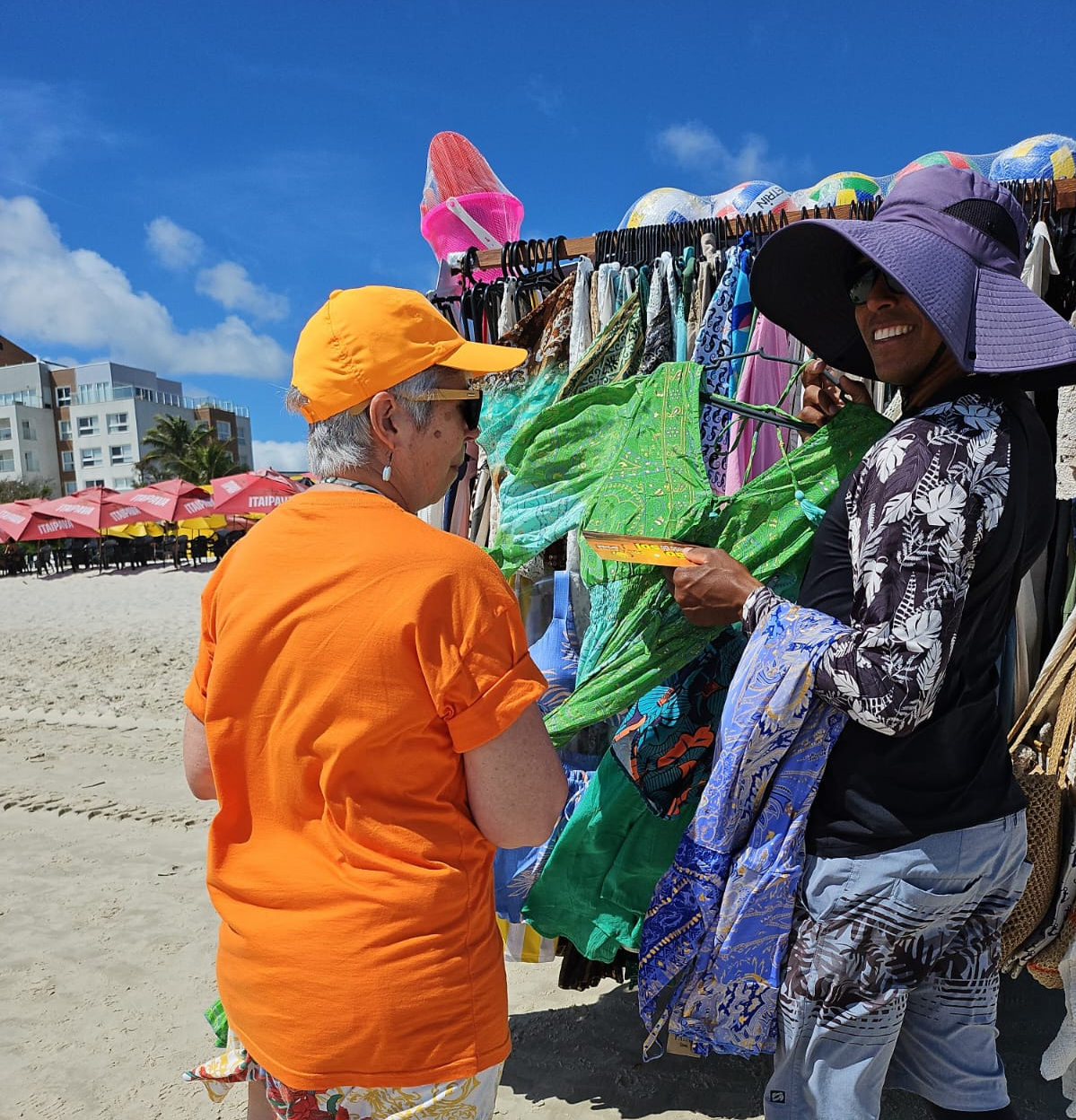 O foco inicial foi a distribuição de insumos de proteção solar. Foram entregues 140 kits completos (contendo protetores solar corporal, facial e labial) e mais 43 protetores labiais avulsos, totalizando 183 itens distribuídos com prioridade para os ambulantes da região.